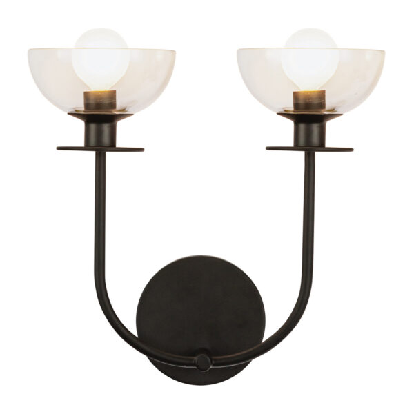 Matowa czerń w połączeniu z przezroczystym szkłem tworzy nowoczesną, wyrazistą kompozycję. Kinkiet dwuramienny z kolekcji Sylvia idealnie uzupełnia aranżacje o industrialnym, minimalistycznym lub nowoczesnym charakterze. Wyróżnia się eleganckim profilem i doskonałą symetrią, co czyni go odpowiednim wyborem do wnętrz o uporządkowanym układzie przestrzennym.